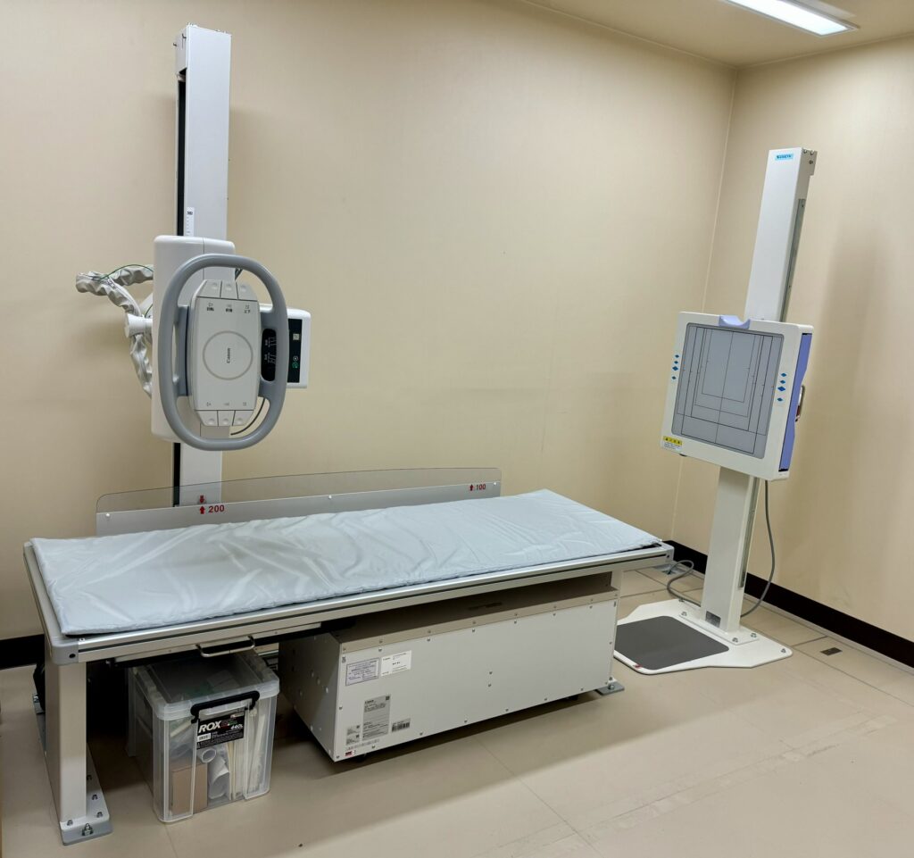 2023年10月に新型のレントゲン撮影装置(Canon製)に入替えしました。撮影した画像は画像サーバシステムを介して診察室で撮影直後に表示して説明しています。過去の画像記録との比較もすぐに行えます。