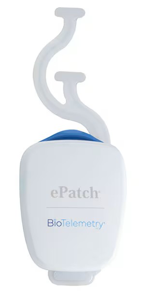 当院で使う機器はPHILIPS社のePatchです。このePatchは長期間胸部に貼り付けることが可能で心電図を連続的に測定します。胸の前面の皮膚に貼り付けるシートとそれに接続する小型の装置で、軽量なので日常生活に支障をきたすことなく使用可能です(水や湯に浸すことは出来ませんがシャワー浴は可能です)。